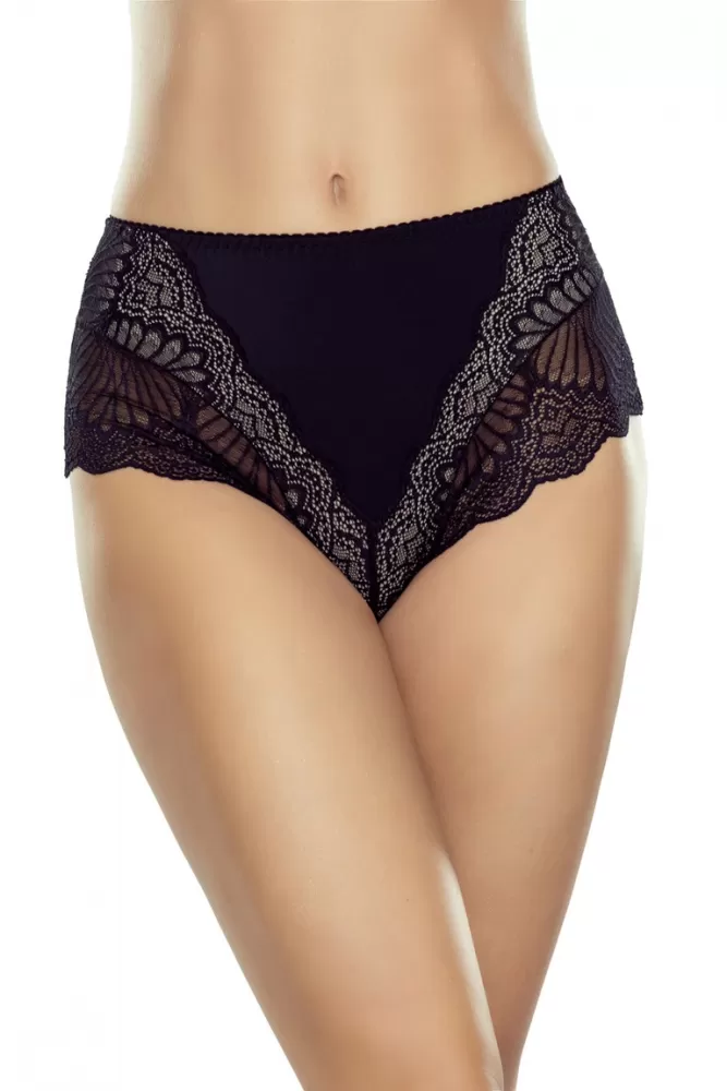 Eleganckie majtki o podwyższonym stanie z podwójną warstwą materiału z przodu, która subtelnie modeluje brzuch. Miękka koronka po bokach i z tyłu dodaje kobiecości, a jej płaskie wykończenie sprawia, że nie odznacza się. Skład:Poliamid 80%, Elastan 20%